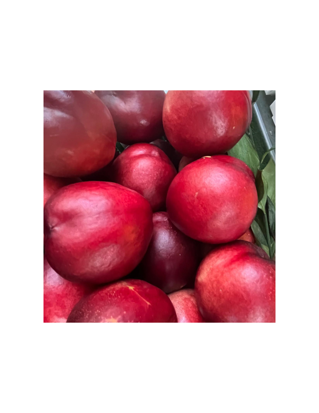 Las nectarinas poseen una piel lisa, atractiva, con un color rojo brillante con fondo amarillo o anaranjado su sabor es jugoso y refrescante. La carne es firme y puede ser de color blanca o amarilla en función de su variedad.